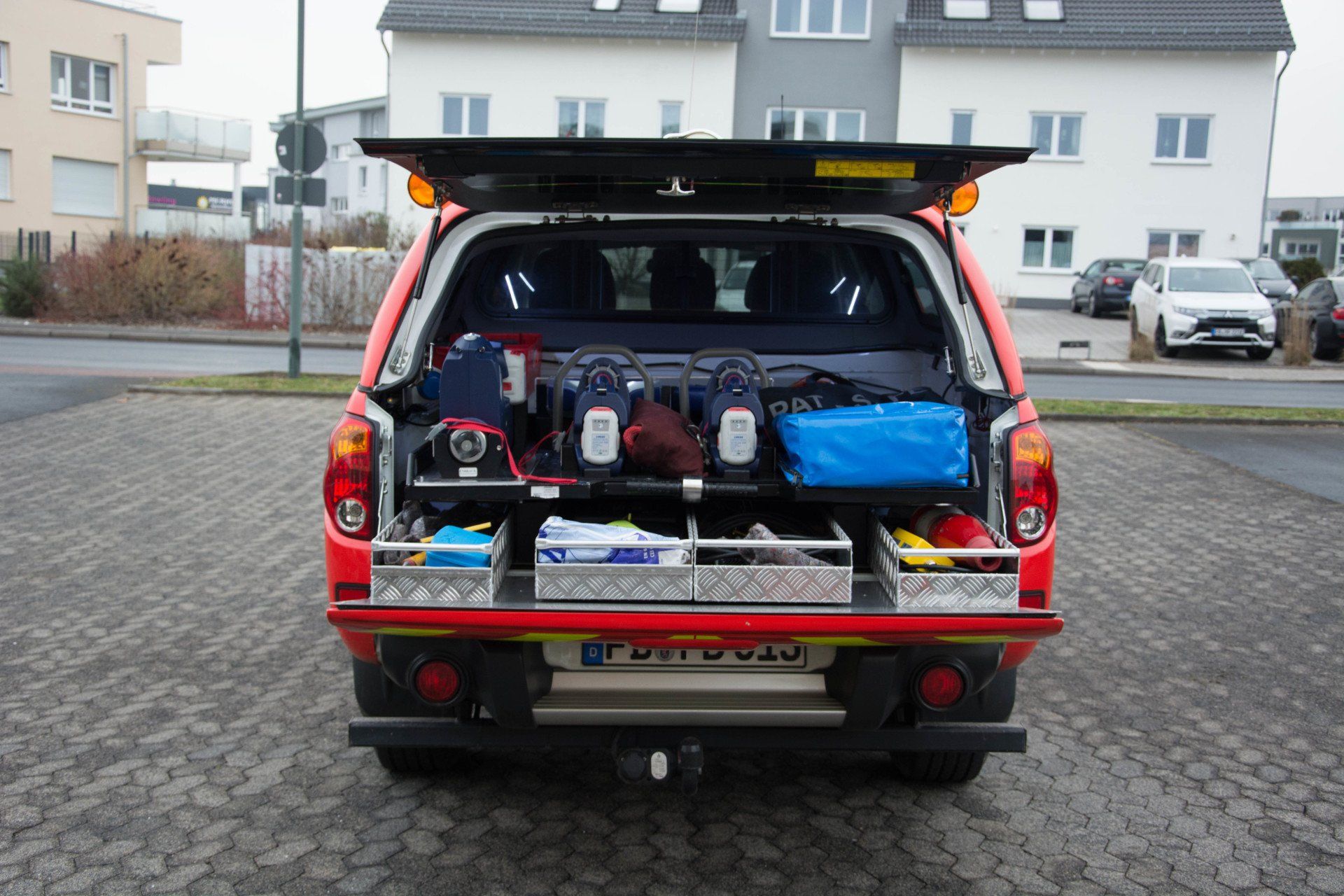 Der Vorausrüstwagen (VRW) ist ein Fahrzeug, das speziell für Verkehrsunfälle konzipiert wurde. Bei Einsätzen mit eingeklemmten Personen ist Zeit ein wichtiger Faktor. Ausgestattet mit einem leistungsstarken Motor, rückt diese Komponente als erstes Fahrzeug aus. Ein weiterer Vorteil ist die geringe Abmessung (im Vergleich mit Großfahrzeugen). Oftmals muss ein längerer Fahrzeugrückstau überwunden werden, um die Einsatzstelle zu erreichen. Hier zeigt sich die Größe und Wendigkeit als wichtiger Pluspunkt. Ausgestattet mit einem Allradantrieb kann es Einsatzstellen erreichen, die schweren Großfahrzeugen verwehrt bleiben. Die Beladung des VRW besteht u.a. aus einem Schneidgerät (LS 200D) und einem Spreizer (LSP 40EN) sowie diversen Materialien wie Ketten, Schäkel und Brechwerkzeug. Weiterhin sind ein Glasschneider, ein Lichtmast und ein so genannter "Octopus" verladen. Dieser verhindert das Auslösen von nicht ausgelösten Airbags während den Rettungsarbeiten. Die hydraulischen Geräte werden mittels eines motorisierten Hydraulikaggregats betrieben. Zusätzlich befinden sich Handfeuerlöscher sowie ein Notfallkoffer für erweiterte Erste Hilfe Maßnahmen im Fahrzeug. Mit 4 Mann Besatzung ist dieses Fahrzeug ein unverzichtbarer "Leistungsträger" für unsere Einheit.